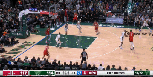 末节关键时刻,字母哥开始了奇葩时刻,进攻干扰球,6罚仅2中,3个失误,亲手把雄鹿送走了。